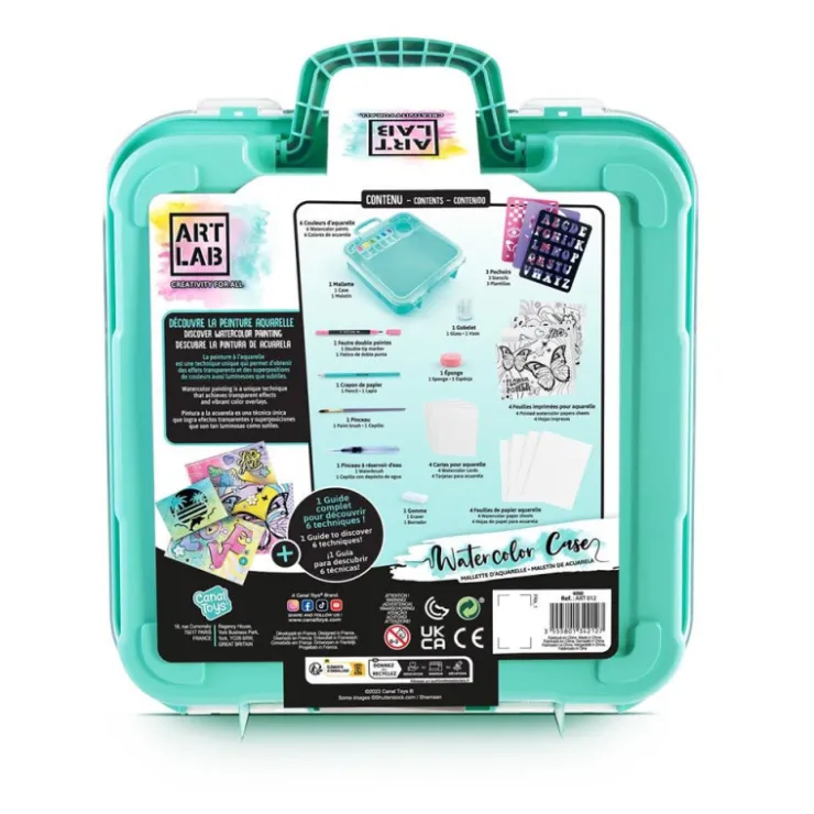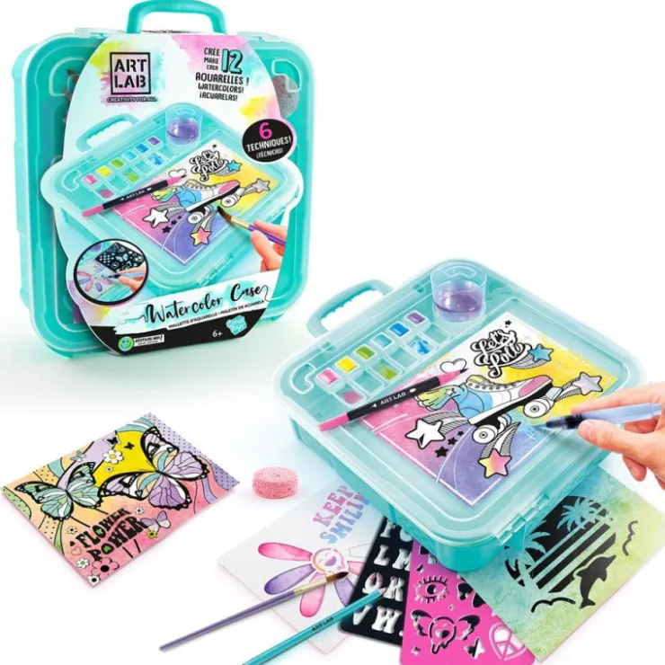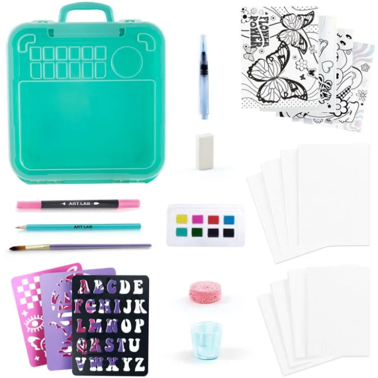 Exponga su contenido en la tapa del maletín y utilícelo como un caballete, mezcle colores, añada agua para crear asombrosos efectos artísticos con todas las herramientas incluidas.