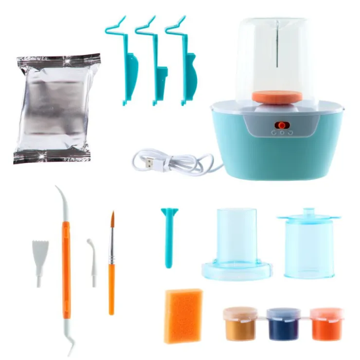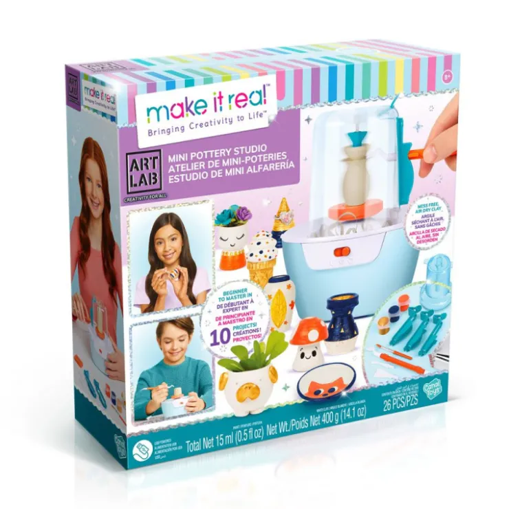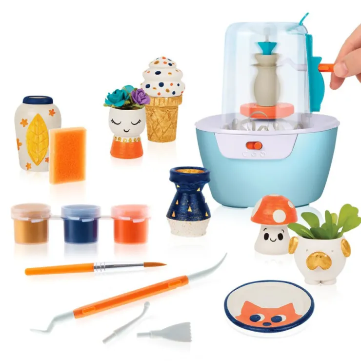 Peligro de atragantamiento – Piezas pequeñas – No apto para menores de 3 años. – Peligro de estrangulamiento – Cordel largo funcional – Se requiere la supervisión de un adulto. – Peligro de descarga eléctrica – alimentación por USB. – Manténgalo lejos de tomas de electricidad de pared. – No lo use si el cable está dañado o deshilachado. – Precaución: Este juguete contiene puntas afiladas funcionales. – Precaución: Puede atrapar pelo – Recógetelo o cúbretelo. – Ajústate la ropa suelta antes de jugar. – No pongas otros objetos en el torno mientras está girando. – Los proyectos son solo para uso decorativo. No puedes comer, beber, calentar ni cocinar los proyectos. – Evita el contacto con los ojos. Si la arcilla se traga, se inhala, entra en contacto con los ojos o causa irritación cutánea, buscar atención médica inmediata. – Mantén la arcilla sellada en una bolsa resellable para evitar que se seque. No la tires por desagües. – No sumerjas el torno en agua, eso podría dañarlo. Limpia con una paño húmedo. – Enjuaga, escurre y seca todas las piezas no electrónicas antes de guardarlas. – Mantén la pintura lejos de muebles, tejidos y ropa. Limpia la pintura con jabón y agua. – Conforme con la norma ASTM D-4236. – Requiere un adaptador USB. – Protege siempre tu superficie de trabajo con un mantel impermeable. – Guarde el embalaje porque contiene información importante. – El producto y los colores pueden ser diferentes de los mostrados. – Accesorios decorativos no incluidos.