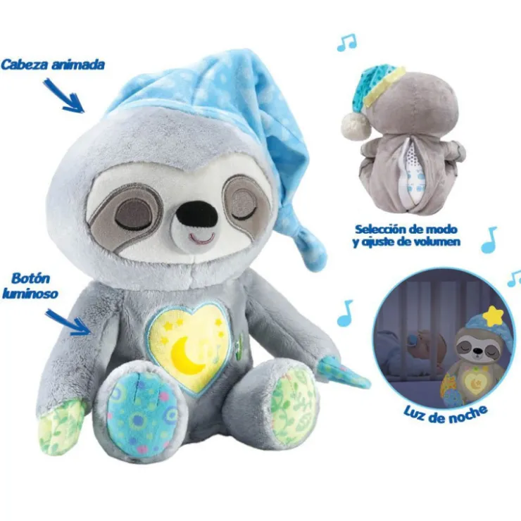 Además, podrás activar uno de los tres modos que trae consigo según la finalidad que busques: muevo mi cabeza (se relajará observando cómo se mueve), botón corazón (activa su suave luz y el cabeceo del animal mientras duerme), botón hoja (salta a la próxima canción del repertorio). ¡A este peluche no le falta ningún detalle!