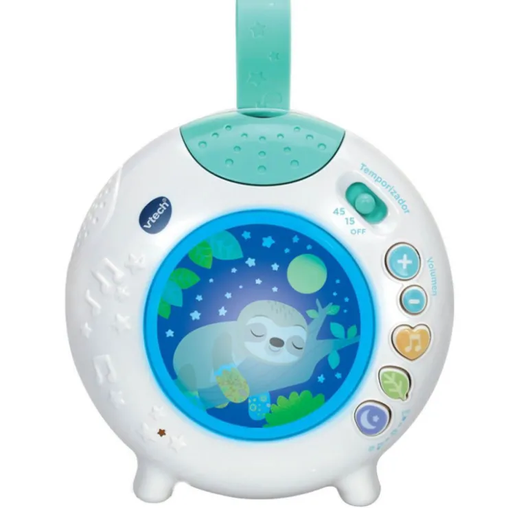 – Proyector con simpáticos perezosos que se puede colgar de la cuna y también llevar a todas partes.