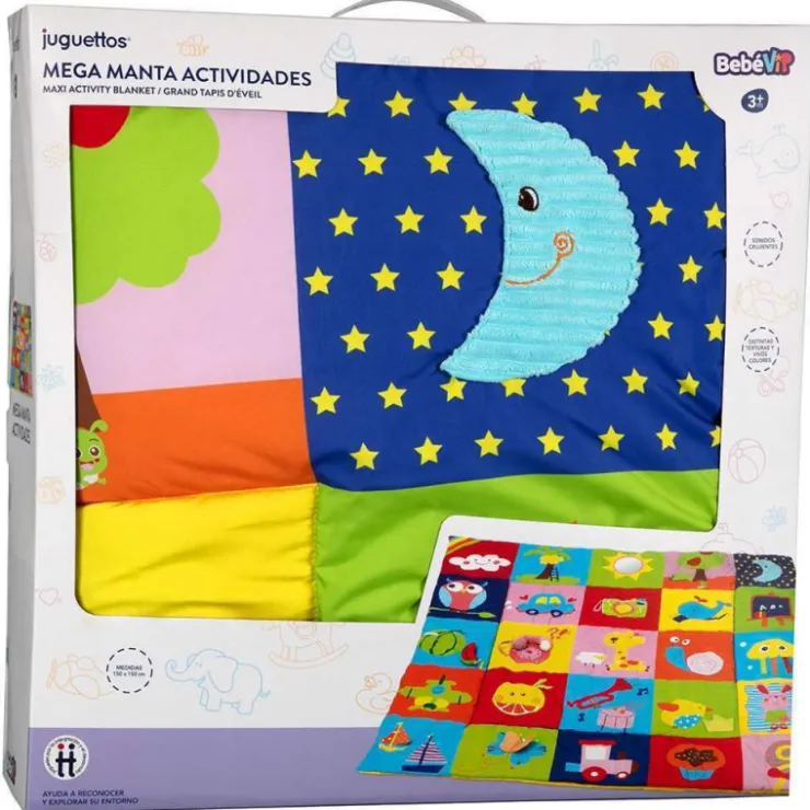 Una manta de gran tamaño ideal para que tu bebé vaya reconociendo y asimilando su entorno. Tiene distintas actividades, texturas y muchos dibujos que llamarán su atención y estimularán sus sentidos, además, podrá jugar de una manera segura y divertida mientras fortalece sus brazos y piernas.