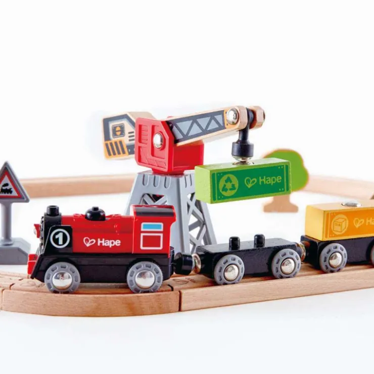 ¡Los peques deberán entregar las mercancías en los plazos acordados! Dispondrán de la grúa magnética incluida en el circuito para poder cargar y descargar de forma más sencilla y rápida. Después simplemente deberán presionar el botón del tren para conducir alrededor de la pista ovalada y entregar los pedidos. Incluye 19 piezas, Producto premiado.