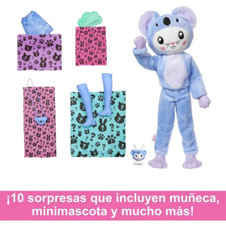 Incluye 1 muñeca Barbie Cutie Reveal con disfraz (conjunto de 5 piezas) y 1 minimascota, 1 peine, 1 par de zapatos y 1 falda.