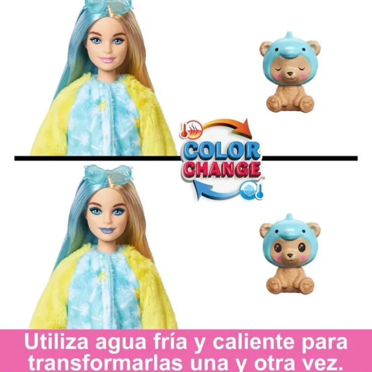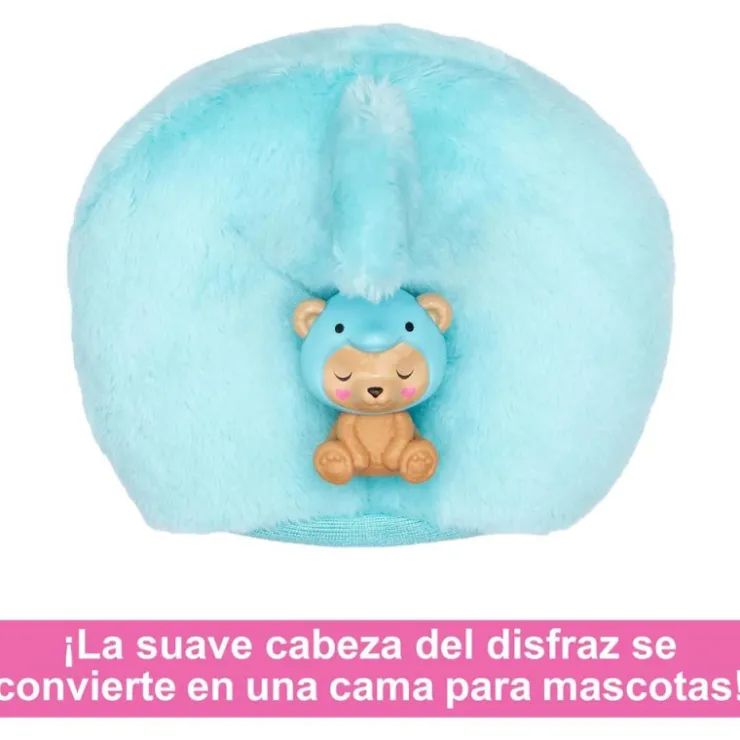 Incluye 1 muñeca Barbie Cutie Reveal con disfraz (conjunto de 5 piezas) y 1 minimascota, 1 peine, 1 par de zapatos y 1 falda.