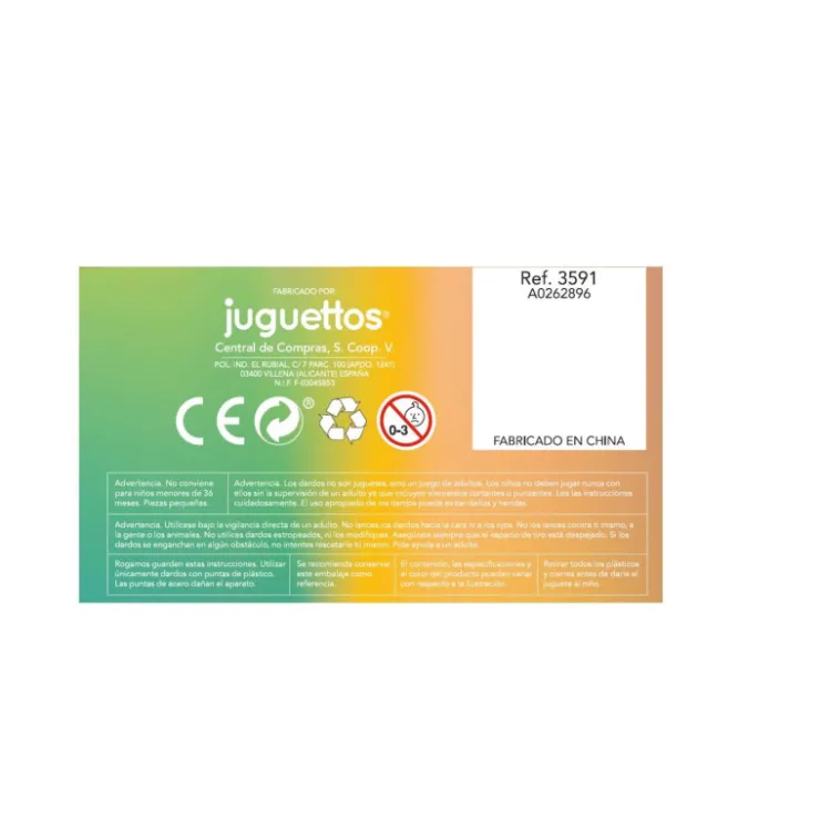 Utilícese bajo la vigilancia directa de un adulto. No lances los dardos hacia la cara ni a los ojos. No los lances contra ti mismo, a la gente o los animales. No utilices dardos estropeados, ni los modifiques. Asegúrate siempre que el espacio de tiro está despejado. Si los dardos se enganchan en algún obstáculo, no intentes rescatarlo tú mismo. Pide ayuda a un adulto.
