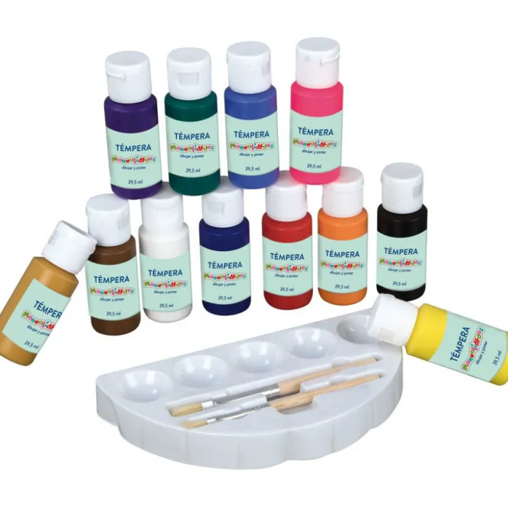 Este estuche incluye 12 témperas de colores que podrás mezclar en la paleta para crear nuevos colores y conseguir hacer las mejores obras de arte.