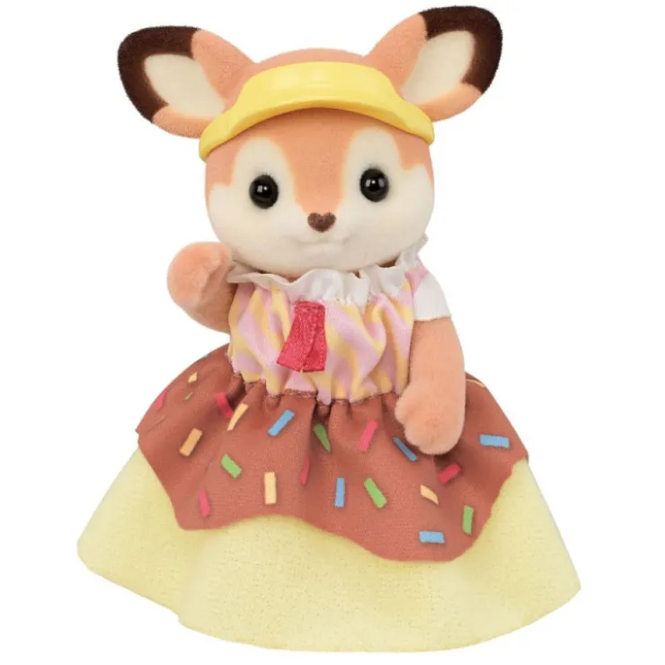 En la Aldea Sylvanian todos reconocen el inconfundible dónut gigante de la Furgoneta de Donuts. Primrose, la mamá Ciervo, conduce la furgoneta por toda la Aldea para llevar a cualquier rincón los favoritos de todos.