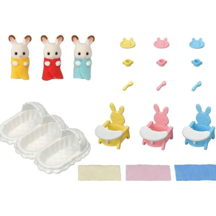 El set incluye las 3 figuras de bebé, cunita y sillitas con accesorios.