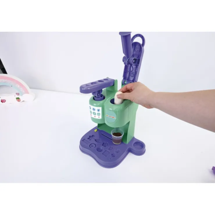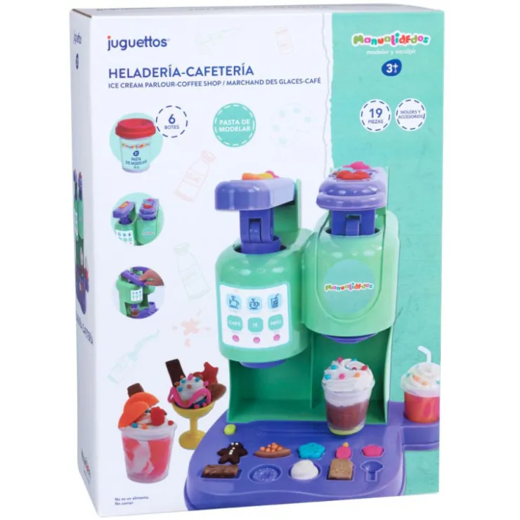 Una divertida heladería y cafetería para crear helados, batidos, dulces, café y mucho más con pasta de modelar. Incluye 6 botes de pasta de modelar, diferentes moldes y accesorios para recrear una auténtica heladería-cafetería. Desarrolla la imaginación y el lenguaje al reproducir roles adultos relacionados con oficios. Favorece la habilidad manual al manipular la pasta y dar forma a las delicias.