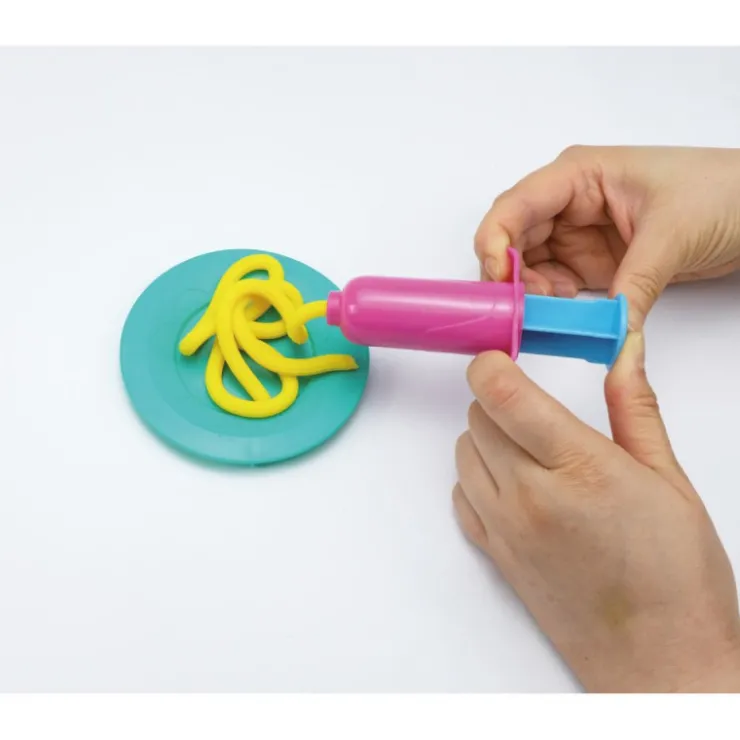 PARA LIMPIAR: el mejor lugar para jugar es sobre una superficie lisa. Para recoger, forma una bola con la pasta de modelar y guarda toda la pasta. Para limpiar los restos déjalos secar y después cepíllalos.