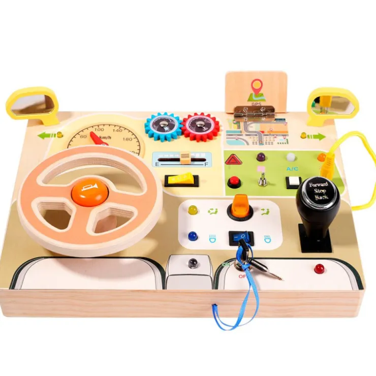 Con su diseño realista, incorpora un volante, palanca de cambios, interruptor de encendido, luces direccionales, de advertencia y hasta espejos, todo sobre una base que simula una experiencia de conducción auténtica.