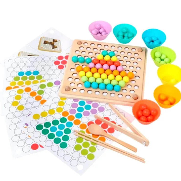 En una primera etapa sirve para ayudar a clasificar y ordenar colores y en una segunda etapa crear composiciones siguiendo las tarjetas incluidas o su propia imaginación.