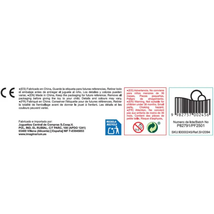 No conviene para niños menores de 36 meses. Piezas pequeñas. Peligro de ahogamiento.