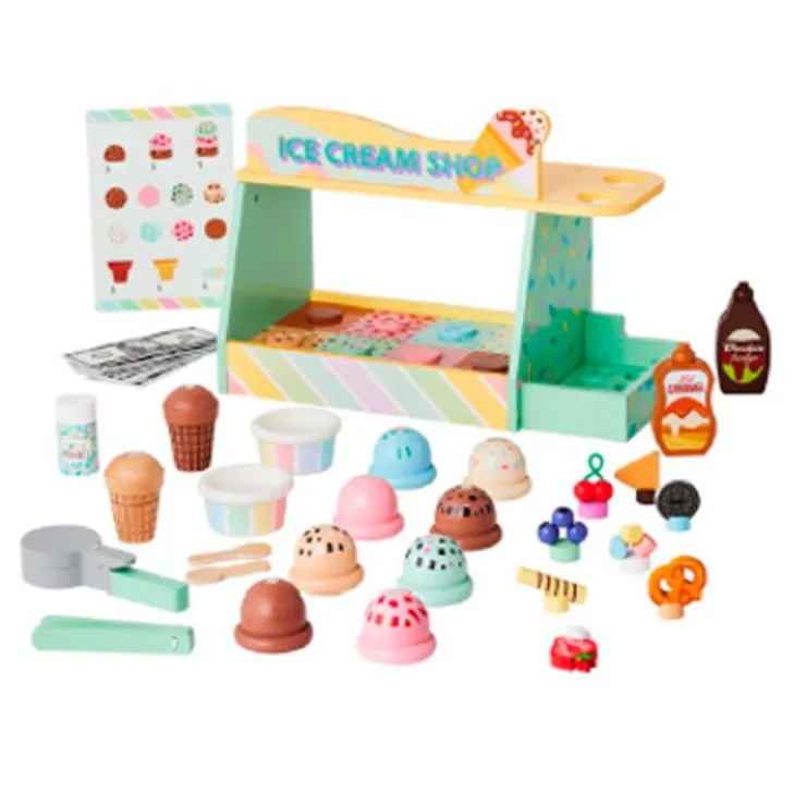 Las bolas y conos de helado magnéticos permiten crear diferentes combinaciones. Incluye variedad de ingredientes como botellas de cobertura, chocolate caliente y salsa de caramelo. El dinero de juguete permite practicar conteo, sumas y restas de forma divertida.