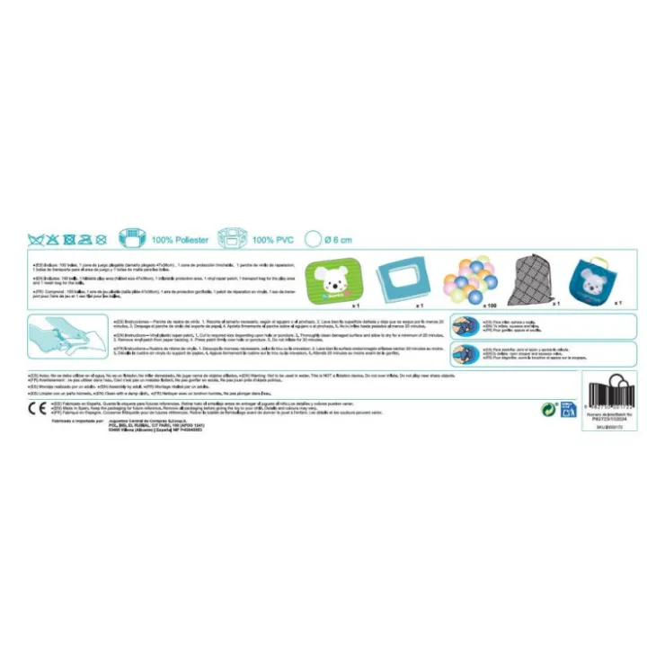 Soporte inflable fácil de montar y estructura textil plegable. Incluye bolsa de transporte para las bolas y para el área