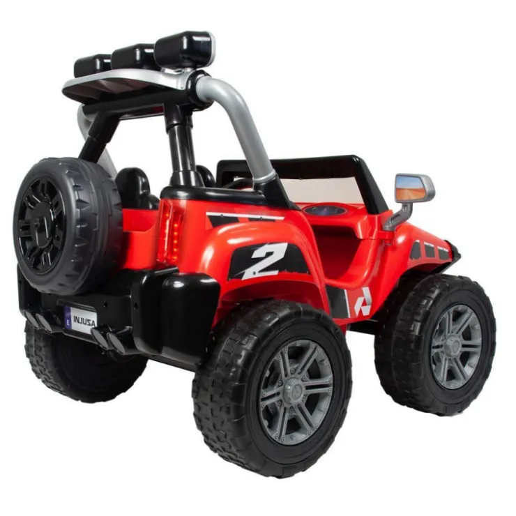 Tiene gran potencia de motor gracias a sus 2 baterías de 12V, y su agarre a la calzada es total gracias a sus ruedas de goma EVA. Dispone de cinturón de seguridad y luces Led delanteras y traseras. También incluye un botón de arranque para aportar mayor realismo a la hora del juego.