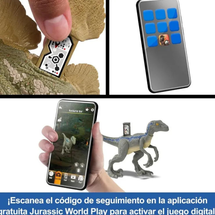 ¡Un juego conectado! Escanea el código de seguimiento oculto del dinosaurio en la aplicación gratuita Jurassic World Play con un dispositivo inteligente compatible (no incluido) para desbloquear juegos de lo más salvajes y experiencias de realidad aumentada.