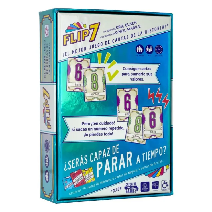 Pídele carta al Repartidor para sumar su valor a tus puntos. Pero debes saber cuándo parar, porque si sacas una carta que ya tienes, lo pierdes todo y te quedas sin puntuar en esa ronda. Y si consigues sacar 7 cartas de Número diferentes, ¡felicidades! ¡Te has marcado un Flip 7!