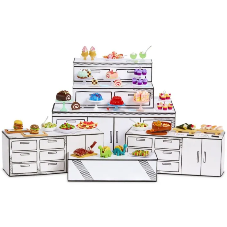 ¡La diversión no termina allí! Tu réplica terminada no es el único artículo que vale la pena coleccionar. Desde versiones en miniatura de réplicas de tortillas para tacos hasta pasteles y moldes de gelatina, hay más de 100 ingredientes, paquetes y accesorios de cocina únicos de réplica de Make It Mini Food Diner Series 3B para coleccionar y crear tus propios mini coleccionables.