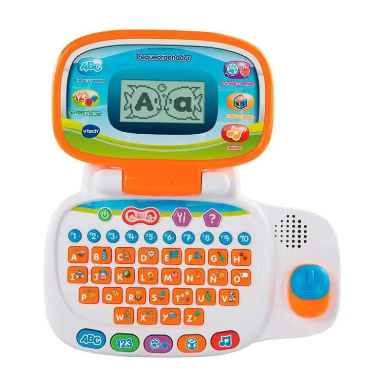 Tiene un teclado ABC con las 27 letras y los números del 1 al 10, e incluye 20 actividades repartidas en cinco categorías: letras, números, música, animales y comida, lógica y música.