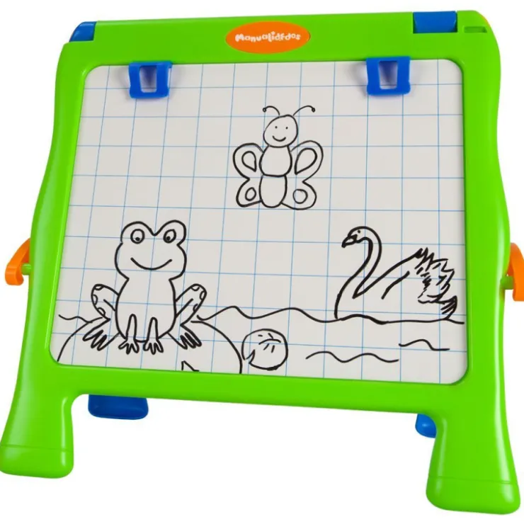Por un lado podrás dibujar con tizas y crear palabras con las letras y figuras magnéticas y el otro lado te servirá de atril para dibujar sobre papel, además también es una pizarra donde podrás dibujar con el rotulador incluido.
