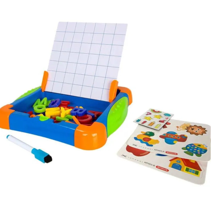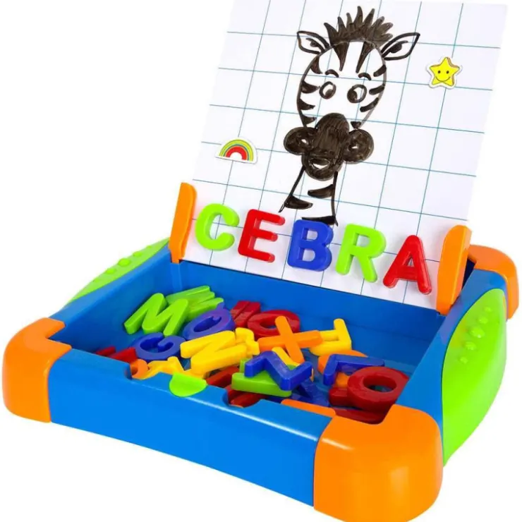 Esta pizarra es muy cómoda porque lleva un asa para transportar y además puedes guardarlo todo en su interior. Es magnética y con el rotulador incluido, podrás dibujar todo lo que imagines desarrollando la destreza motora fina de una forma creativa y ayudando a estimular la concentración y a focalizar la atención.