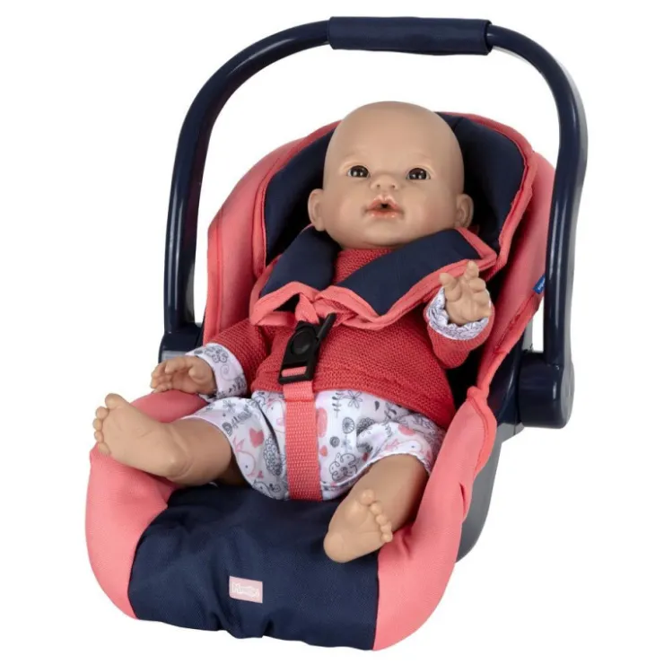 Con este portabebés podrás llevar a tu bebé Mimittos bien seguro a cualquier parte. El asa es reclinable en varias posiciones y tiene arnés de seguridad. Para muñecos de 38-43 cm.