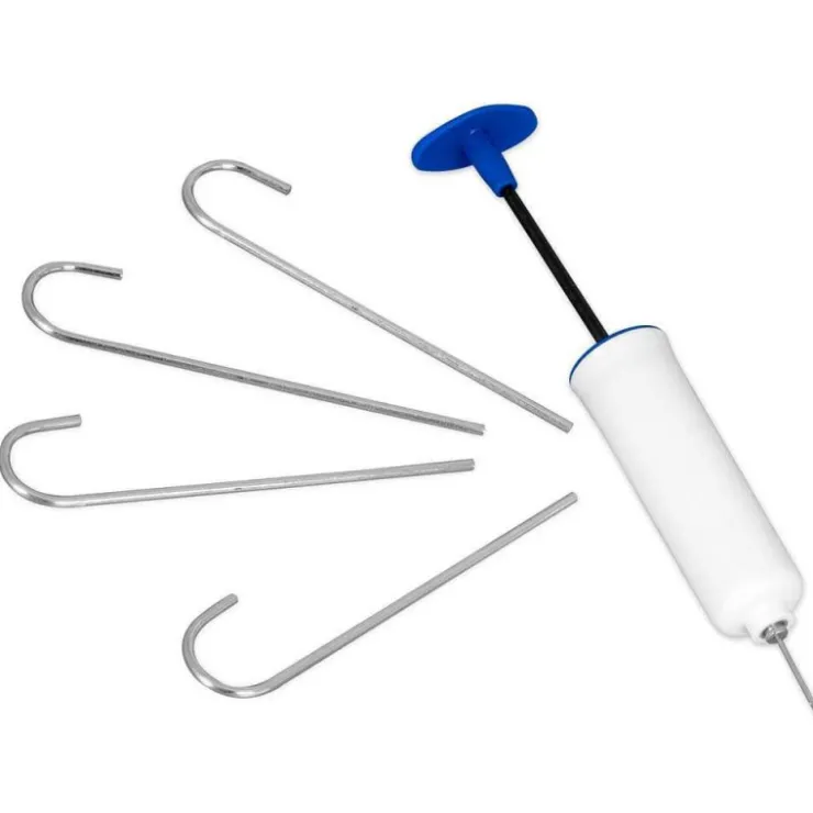 Incluye un balón, inflador y piquetas para fijarla al suelo.
