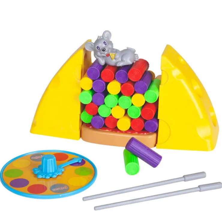 Un juego que ayudará a que niños y niñas desarrollen su coordinación, habilidad manual y su atención, además de hacerlos interactuar con otras personas e iniciarse en juegos de reglas sencillas. Apila los troncos y pon encima al ratón, gira la ruleta y saca los troncos con ayuda del bastón, pero…¡cuidado! ¡Que no se caiga el ratón!