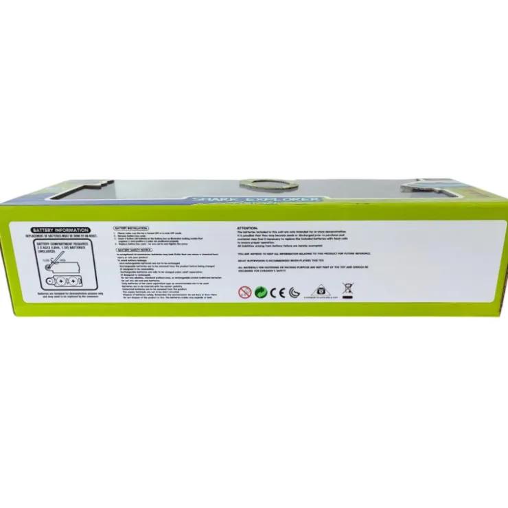 Con figuras articuladas. Tira de la aleta del tiburón para activar la luz y el sonido.