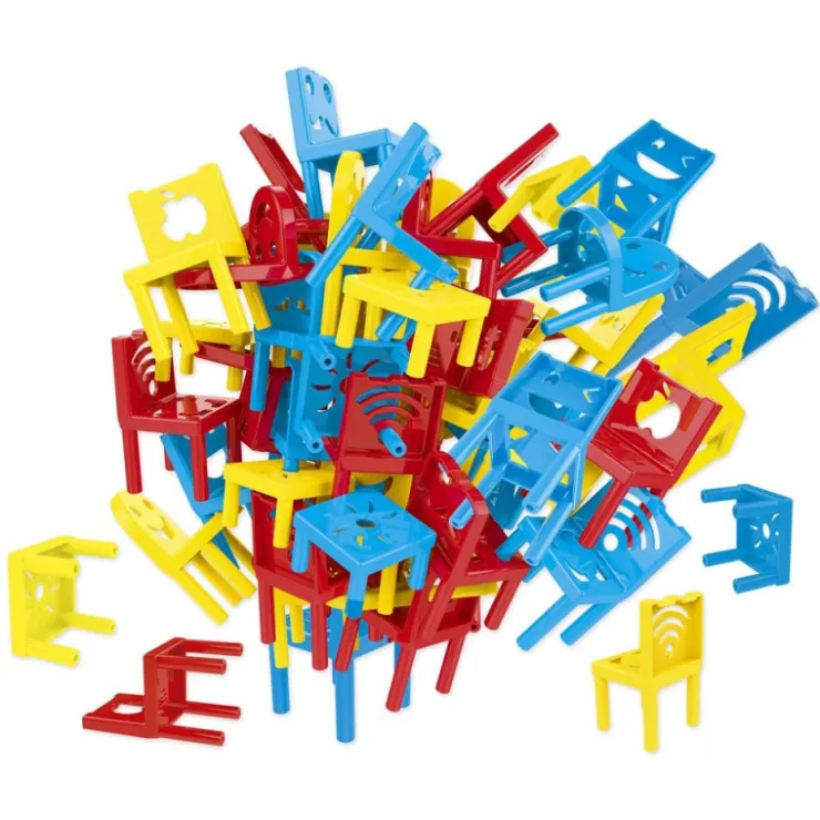 Divertido juego de habilidad donde cada jugador deberá colocar una silla encima de otra, evitando que la torre se caiga. Mejora la psicomotricidad fina y el control del pulso intentando equilibrar las sillas. Fomenta la socialización y la diversión en grupo.