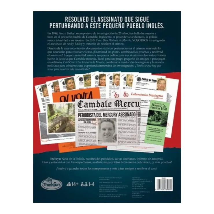 Dentro de la Mystery Box encontrarás documentos realistas relacionados con el crimen y un total de 28 pruebas que necesitarás para resolver el caso. Este juego de lógica e investigación es una experiencia inmersiva que se puede jugar en solitario o en pequeños grupos de hasta 4 jugadores. ¿Lograrás desentrañar el misterio y encontrar al culpable? Incluye: Nota de la policía, recortes del periódico, cartas anónimas, informe de autopsia, fotos y entrevistas con los sospechosos, análisis, mapa y fotos de la escena del crimes, ¡y muchas pruebas más!