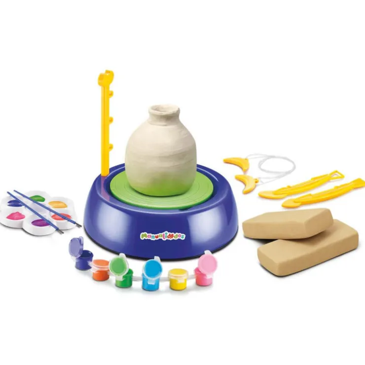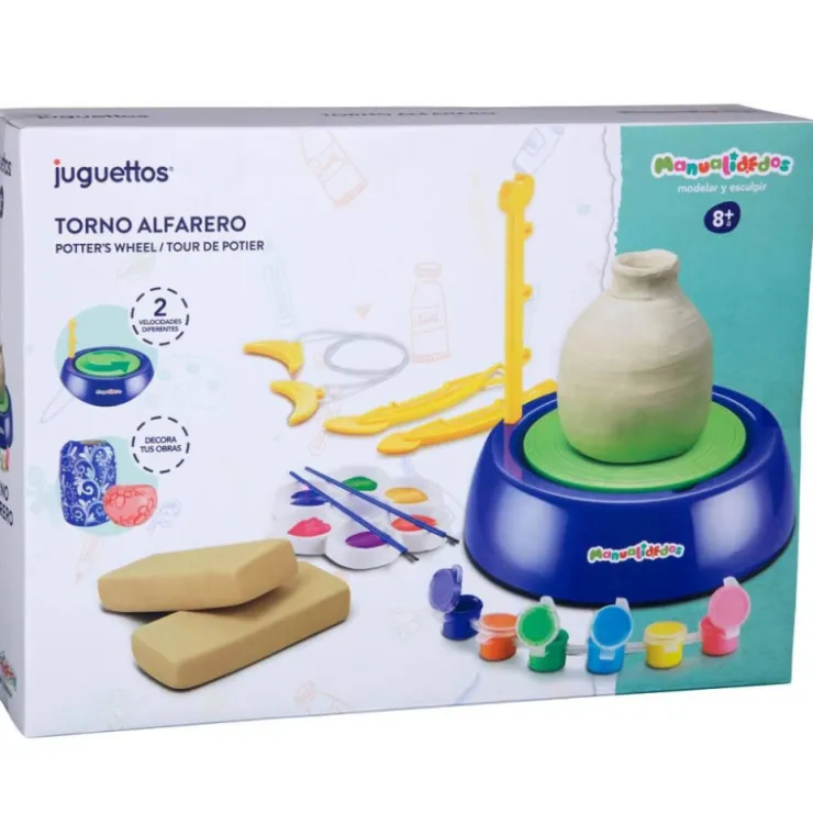 Este torno con 2 velocidades diferentes te será muy útil para dar forma a la arcilla. Además incluye accesorios para ayudarte a modelar y pintura para decorar tus creaciones.