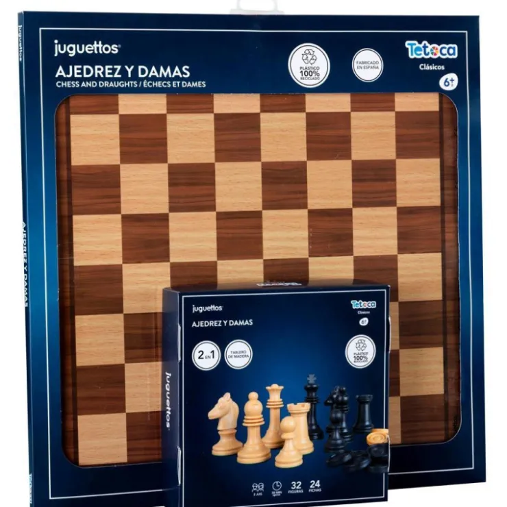 Juegos de estrategia para disfrutar en familia o con los amigos. Fabricado en España con plástico 100 % reciclado. 2 en 1 (ajedrez y damas).