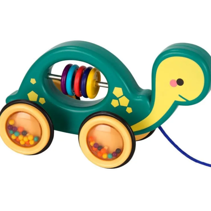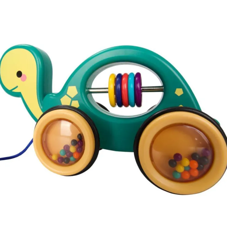 Ejercitando la marcha y el equilibrio, el bebé llegará a controlar su centro de gravedad. Esta tortuga le acompañará en los primeros paseos, además tiene bolitas en sus ruedas que harán ruido al girar y