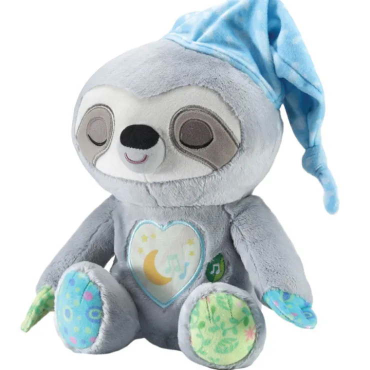 Además, podrás activar uno de los tres modos que trae consigo según la finalidad que busques: muevo mi cabeza (se relajará observando cómo se mueve), botón corazón (activa su suave luz y el cabeceo del animal mientras duerme), botón hoja (salta a la próxima canción del repertorio). ¡A este peluche no le falta ningún detalle!