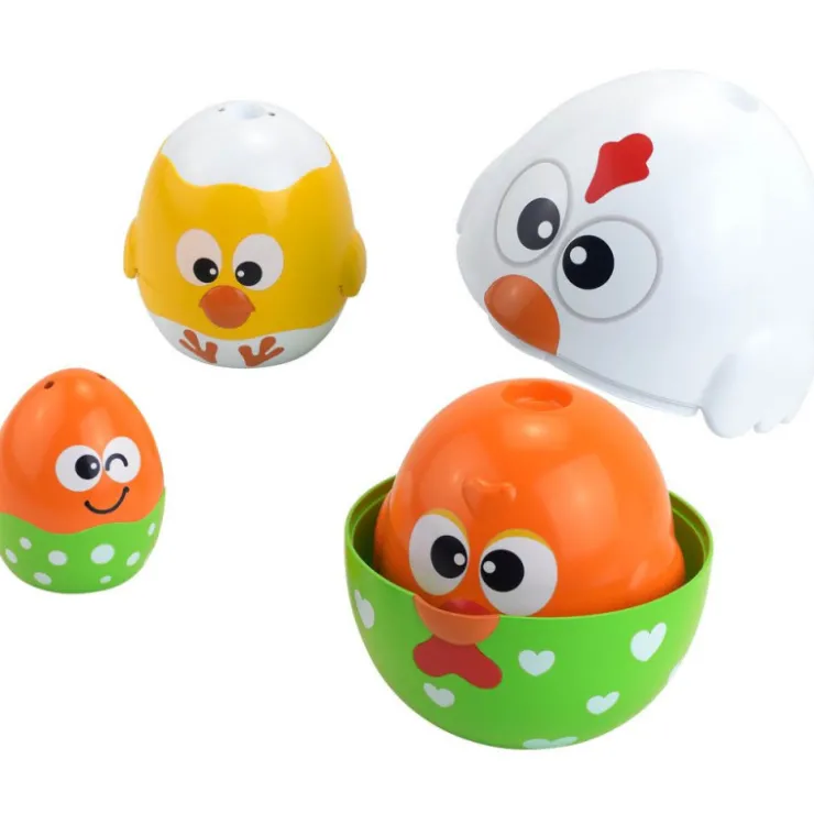 Metiendo uno dentro de otro y apilando a estos divertidos pollitos, tu bebé aprenderá a ordenar de mayor a menor favoreciendo la manipulación y mejorando su coordinación ojo-mano.