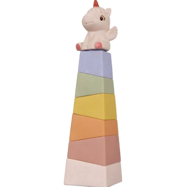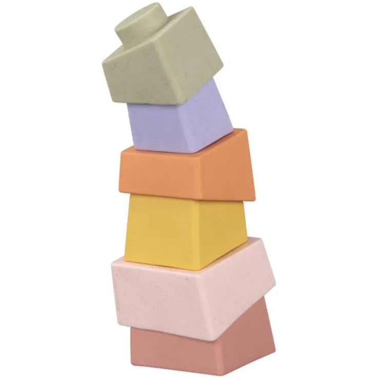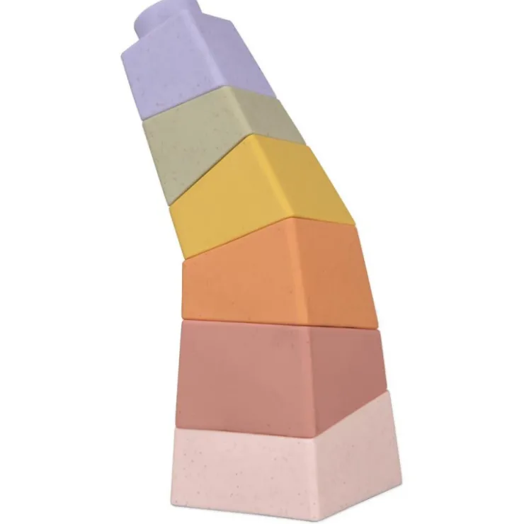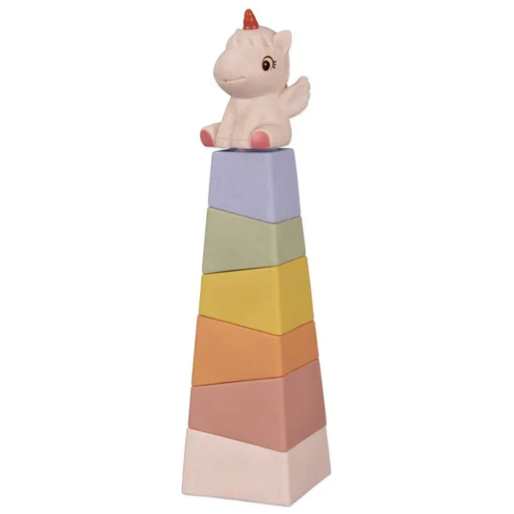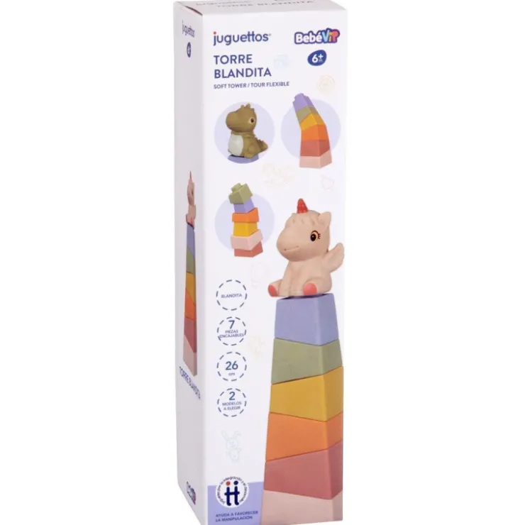 Juego de seis cubos blanditos de textura suave y colores cálidos con formas irregulares. Incluye figura de dinosaurio o unicornio, para encajar en la cima. Desarrolla el razonamiento y permite la discriminación de tamaños y colores. Hay varios modelos a elegir.