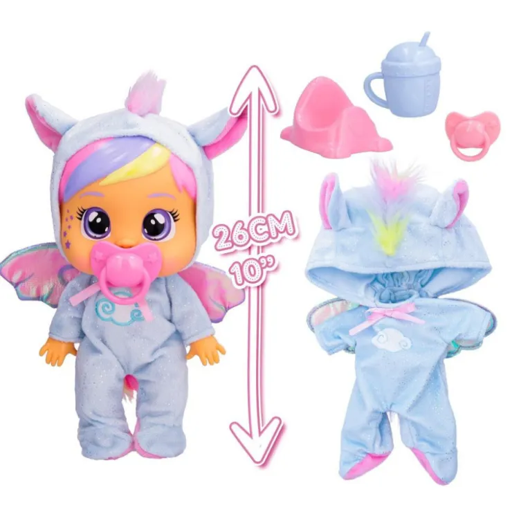 Conoce a Jenna Loving Care de los Bebés Llorones mundo Fantasy, ahora en un tamaño reducido y mucho más ligero! Viene con su pijama personalizado y tiene los ojos y el pelo pintado. Incluye un biberón para simular darle de beber, un urinal y su chupete a conjunto. Además, como todos los Bebés Llorones, llora lágrimas de verdad!