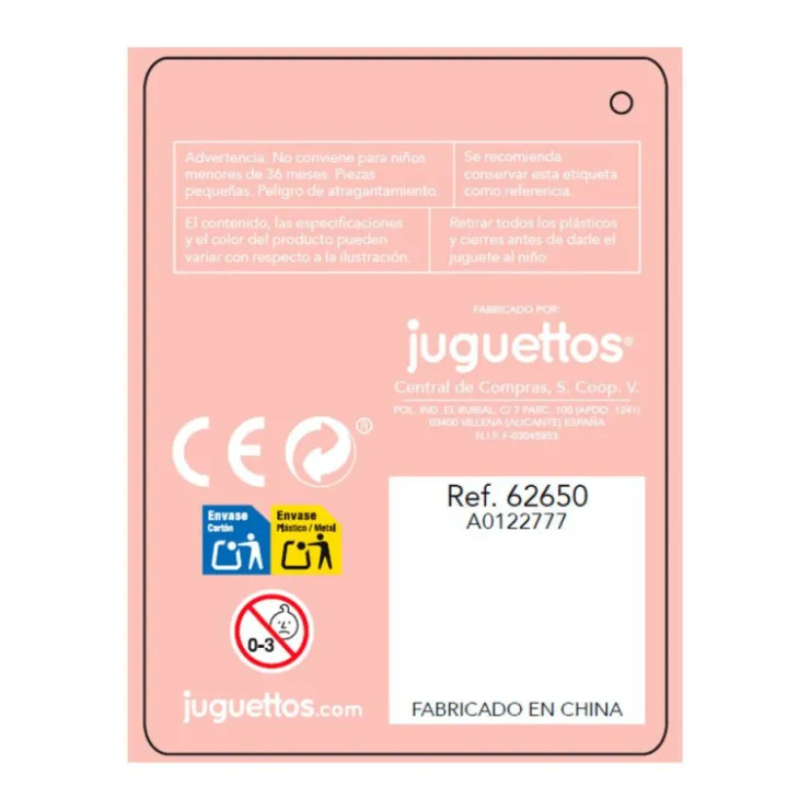 No conviene para niños menores de 36 meses. Piezas pequeñas. Peligro de atragantamiento.