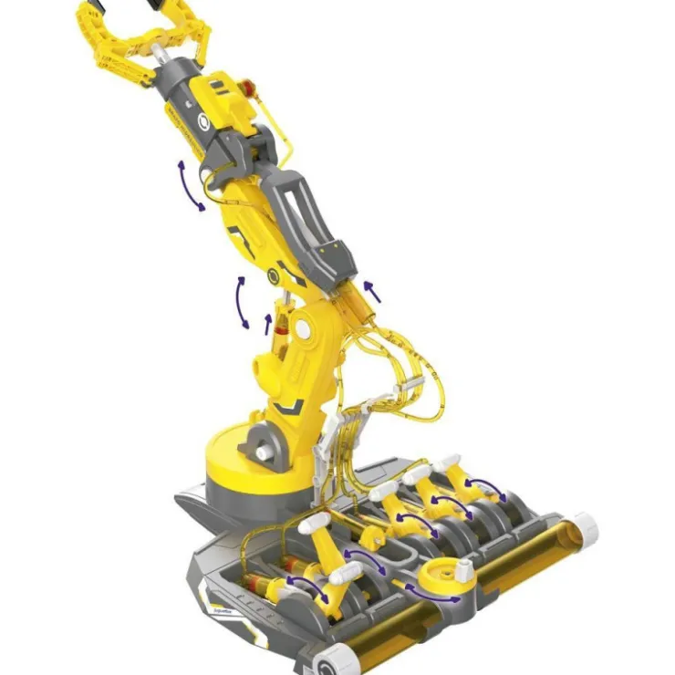 Podrás construir un brazo hidráulico con 3 tipos de agarre y capaz de levantar piezas de hasta 100 g. No necesita pilas o motor, el brazo hidráulico se acciona con la fuerza del agua. Niños y niñas aprenderán conceptos básicos de la ingeniería y la física, a la vez, que desarrollan su concentración, razonamiento y creatividad.