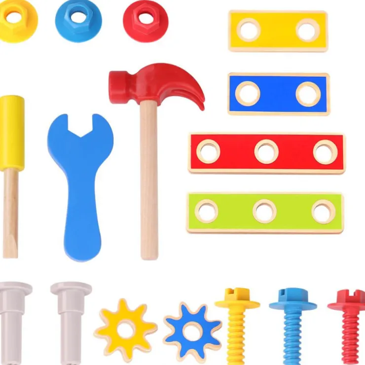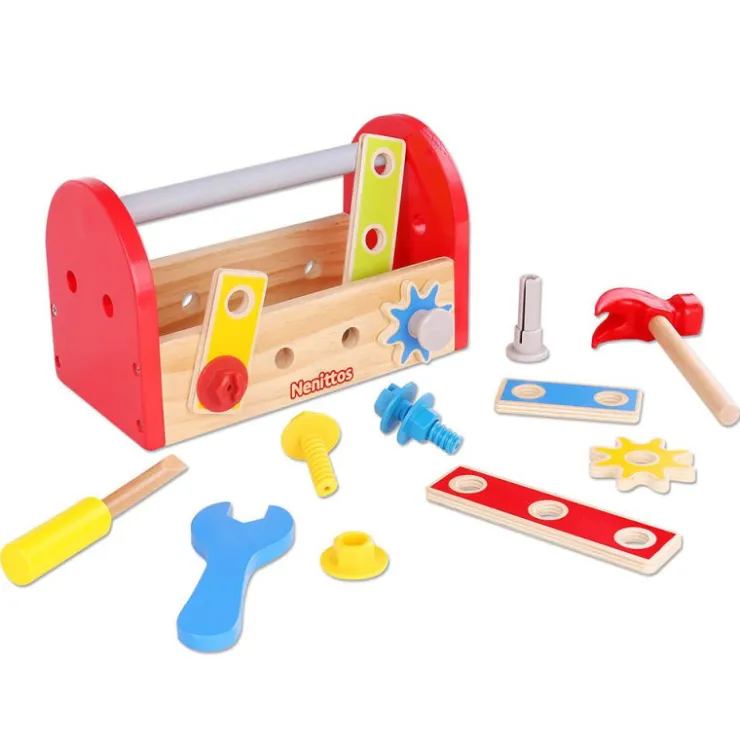 Caja de herramientas con la que niños y niñas ejercitarán la coordinación ojo-mano además de segmentar los movimientos de los dedos al utilizar las distintas herramientas y accesorios para enroscar, desenroscar, colocar y sacar las piezas que van a presión.