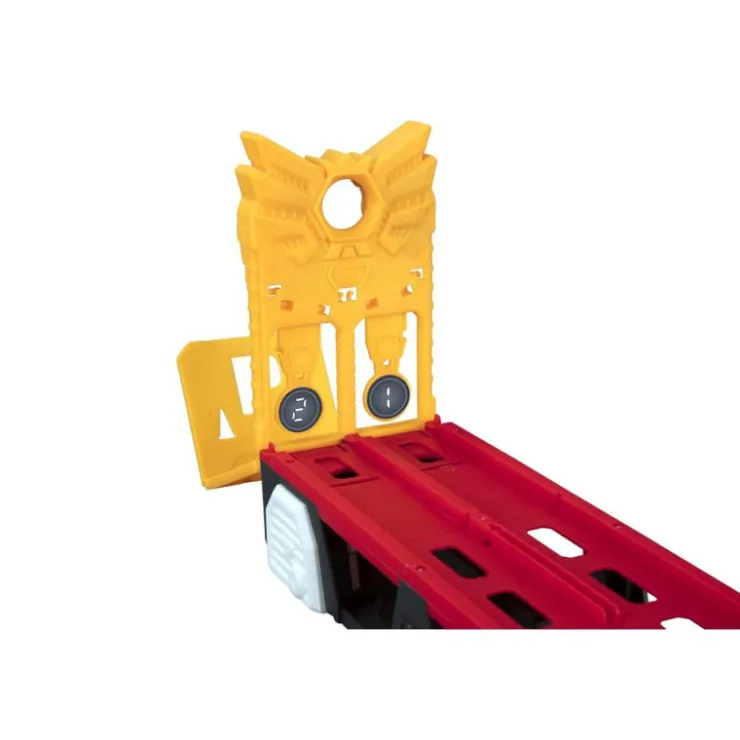 Un camión portacoches que se convierte en una pista de más de 150 cm. Activa el lanzador doble de la cabina y los coches alcanzarán velocidades de vértigo hasta llegar a la meta, el primero que llegue activará los sonidos y aplausos. Levanta las diferentes rampas de la pista para añadir más emoción. Puede almacenar hasta 12 coches (se venden por separado). Incluye 2 coches y además tiene un asa para que lo puedas llevar a cualquier parte. Sonidos y aplausos. Rueda libre.
