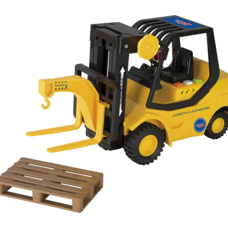 Con esta carretilla elevadora podrás subir o bajar la mercancía y colocarla donde quieras. Además, tiene luces y sonidos como las de verdad. Escala 1:16.