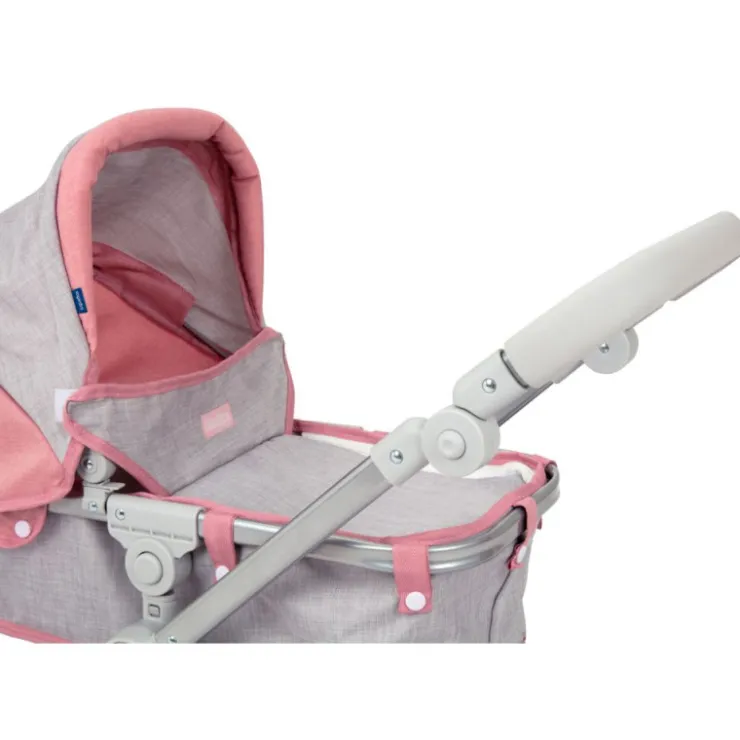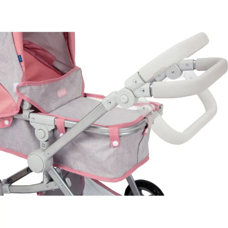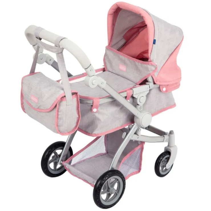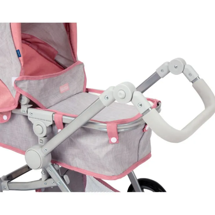 Coche de paseo plegable para pasear a tu bebé Mimittos. El capazo se convierte en silla fácilmente uniendo sus correas. Las ruedas giratorias te permitirán un manejo ágil y cómodo. Además el manillar es multiposición y acolchado. Incluye capota abatible, arnés de seguridad, bandeja inferior y bolso. Favorece la motricidad global, la imaginación y el lenguaje al reproducir roles adultos relacionados con el cuidado de los bebés.