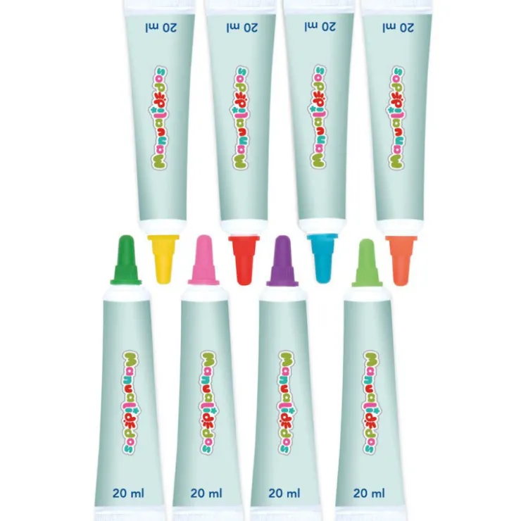 Contenido: 62 pegatinas y 8 tubos de gel de diferentes colores