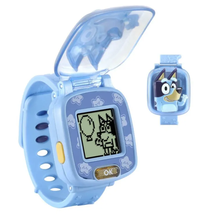 ¡Es la hora de aprender! Un reloj interactivo con las voces originales de Bluey y Bingo, funciones como cronómetro, alarma o cuenta atrás, y 4 juegos educativos para divertirte. Personaliza además tu reloj con diferentes esferas y tonos para la alarma.