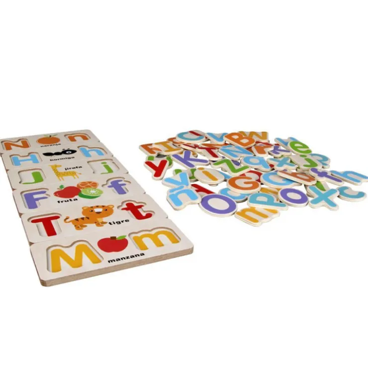 Es importante enseñar a los niños y niñas palabras escritas, hablarles de letras, nombrarles objetos y alabar sus grafismos. Con este encajable abecedario aprenderán a identificar las letras de una manera divertida.