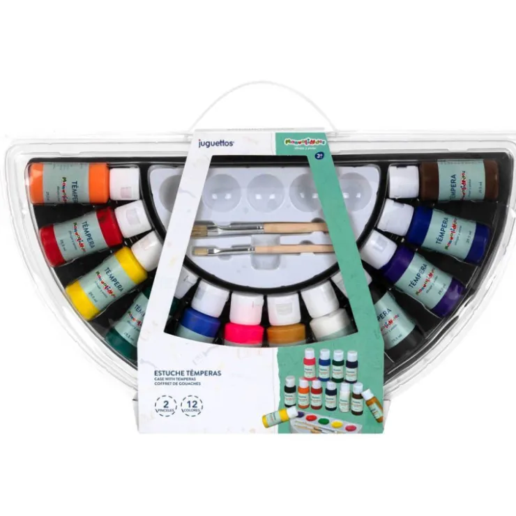 Este estuche incluye 12 témperas de colores que podrás mezclar en la paleta para crear nuevos colores y conseguir hacer las mejores obras de arte.