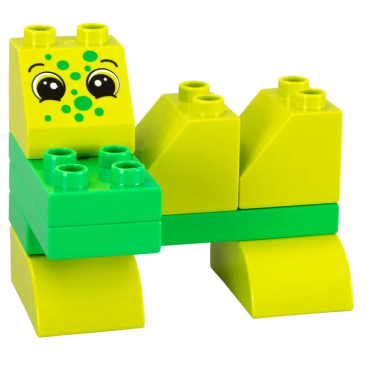 Set de 48 piezas para construir un tren con locomotora y tres vagones. Incluye bloques con caras de animalitos para crear combinaciones divertidas. Favorece la imaginación y el lenguaje al recrear historias y ejercita la habilidad manual al encajar y ensamblar las piezas.